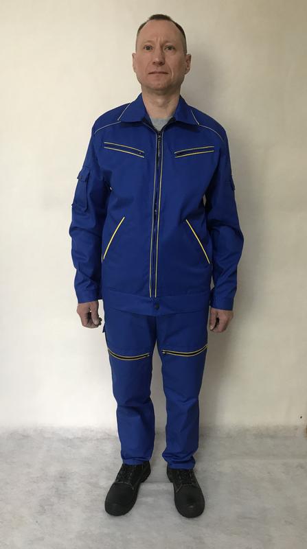 Костюм рабочий авиатор, куртка и брюки синего цвета с желтым кантом