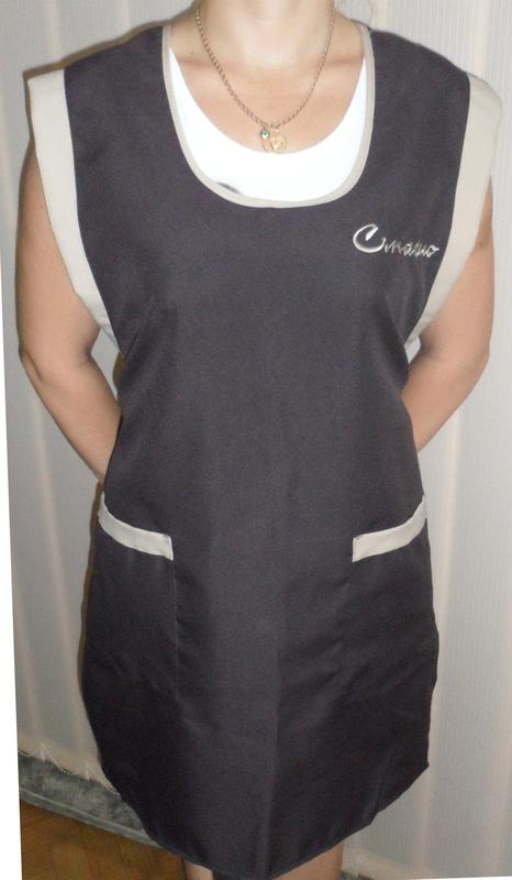 Фартук для работника торговли, для пошива данной модели используется ткань стрейч-габардин. Фартук перекидной, круглый вырез с воротником, завязки по линии талии, впереди два внешний накладных кармана. Цвет, ткань и отделка по желанию клиента.