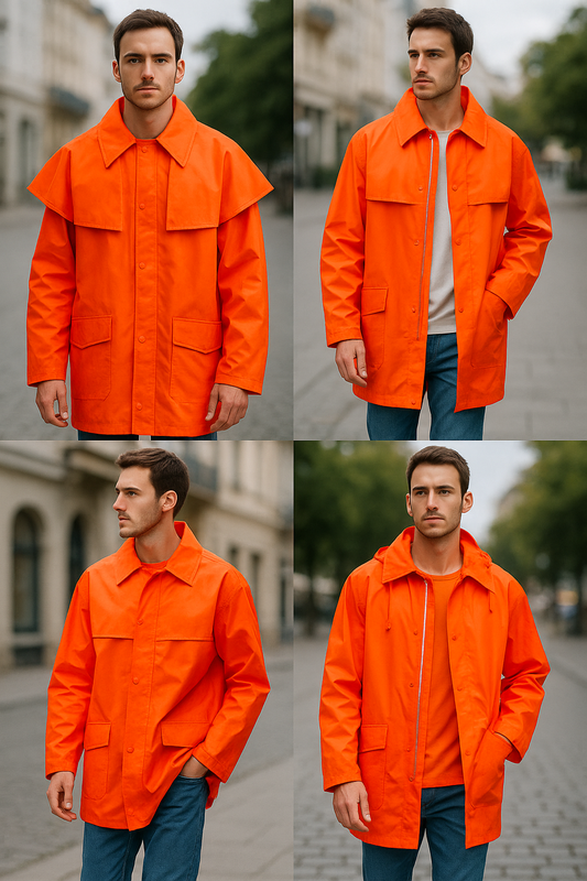 Стильный и функциональный дождевик ярко-померанчового цвета от Rainstar Super – идеальный вариант для дождливой погоды, путешествий, рыбалки или активного отдыха. Благодаря насыщенному цвету обеспечивает дополнительную видимость и безопасность. 🔸 Особенности модели: Ярко-оранжевый цвет (красивая заметность в пасмурные дни). Двойная защита: молния + кнопки спереди. Большой отложной воротник и защитная планка от дождя. Два накладных кармана спереди. Вентиляционные отверстия с люверсами для комфорта. Длинные рукава с регулировкой (на кнопках/резинках). Удлиненный крой для надежной защиты. Легкая, но плотная непромокаемая ткань. 🔸 Размер: Gr. 54/56 (ориентировочно XL–XXL, oversize). 🔸 Состояние: отсутствуют следы носки 🔸 Материал: плотный непромокаемый полиэстер с прорезиненным покрытием. ✅ Преимущества: Надежная защита от дождя и ветра Яркий цвет для лучшей видимости и безопасности Легко одевается поверх любой одежды Имеет удобные карманы и вентиляционные отверстия Подходит как для работы, так и для отдыха Легко складывается и не занимает много места ВАЖЛИВО ! Безопасная оплата только на Укрпочту и Meest