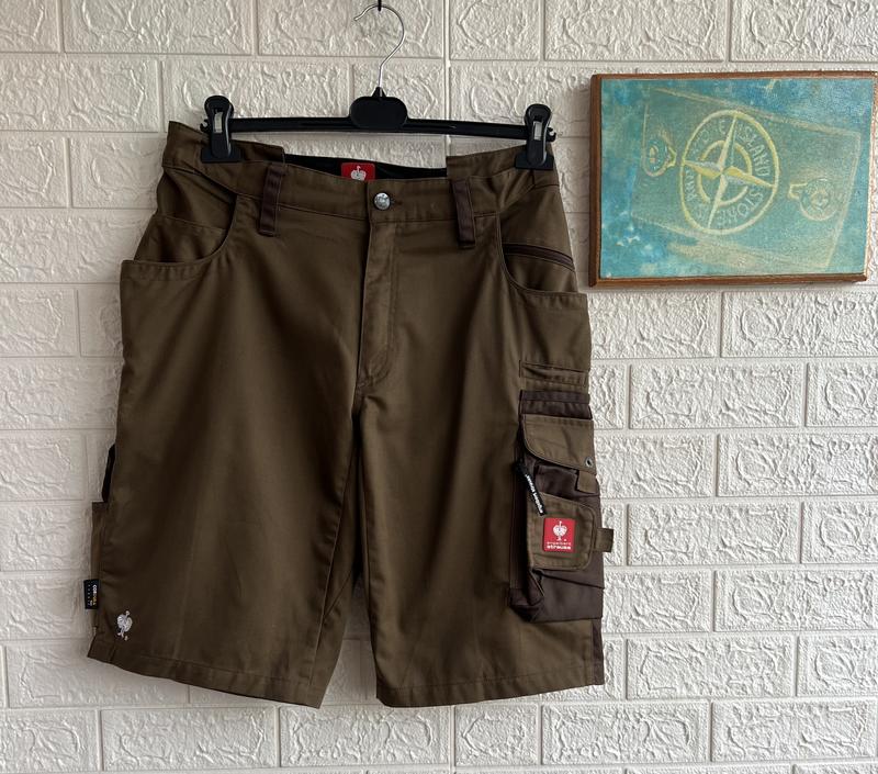 Шорты рабочие Engelbert Strauss motion 2020 cordura карго р48 как новые Шорты для работ Энгелберт страус со вставками из кордуры Размер 48 (M) Замеры: длина - 55, полу пояс - 41-48, бедра - 56, выход снизу - 27; Состояние как новые материал: 65% полиэстер / 35% хлопок спортивные рабочие шорты Цвет Зеленое масло Спереди материал комбинированный рип стоп с хлопком, износостойкий материал который не боится почти ничего, не затирается, не протирается, устойчив к выгоранию эластичный пояс флексбет не сковывает движений широкие шлевки для ремня под рабочую сумку усиленные карманы кордура глубокие боковые карманы функциональный карман для рулетки многокамерные набедренные карманы Максимально качественные технологичные шорты, куча карманов, утяжек, присутствуют усиленные вставки из кордуры.