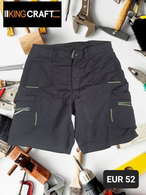 Рабочие шорты из облегченной ткани King craft Herren-leicht,черного цвета в идеальном состоянии. Д.по біч.шву -50 см/ Д.по крок.шву -22 см. П.О.Т. -44см-48 см П.О.С. -53 см h.посадки спереди -33 см / сзади -38 см Шир.шорт пон зу -30 см