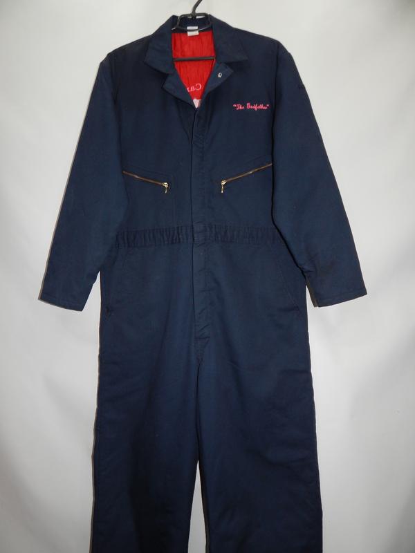 Комбінезон чоловічий робочий утеплений р.50-52 011KRM Чоловічий робочий комбінезон із довгим рукавом на підкладці, утеплений повністю тонким шаром синтепону Тканина щільна, непродувна, чудової якості. Комбінезон застібається на кнопки та блискавки. Є 4 кишені в бічних швах штанів, 2 задні кишені, 2 нагрудні кишені. На високий зріст. Стан б/у — чудовий. Тканина верх: 35% бавовна, 65% поліестер. Підкладка — 100% нейлон. Утеплювач — тонкий шар синтепону. Мерки по верху: плечі — 52 см; напівобхват грудей — 64 см; довжина рукава - 60 см; довжина до талії — 51 см; напівобхват талії — 56 см; напівобхват стегон — 68 см; довжина за внутрішнім швом (кроковий шов) — 77 см; довжина від талії (штани) — 112 см.