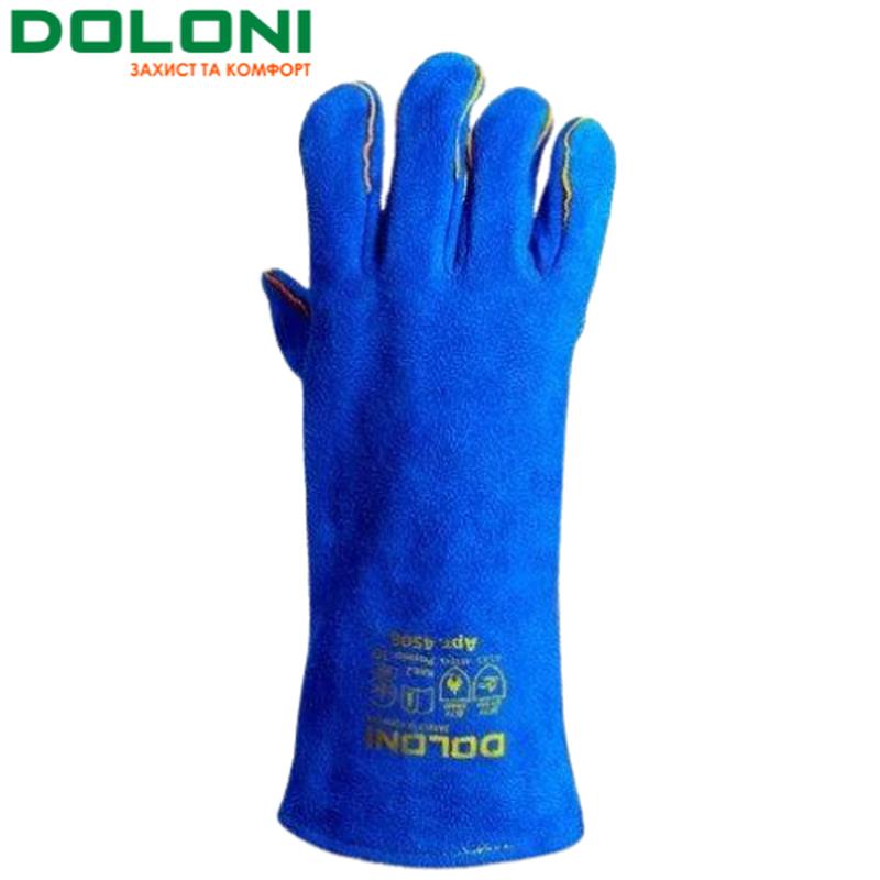 Перчатки краги cпилковые для сварщиков удлиненные doloni d-flame синие 4508