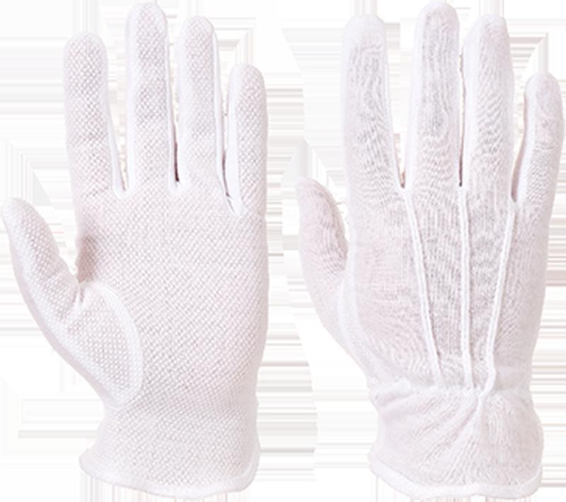Многоцелевые чувствительные перчатки из 100% Terry хлопка с тремя сшитыми деталями на тыльной поверхности. ПВХ точки на ладони и пальцах для превосходной фиксации.