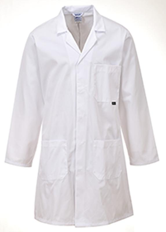 Этот превосходный халат удовлетворяет всем требованиям для выполнения инженерных и исследовательских работ. Характерные особенности халата – потайная застежка спереди и два нижних накладных кармана наряду с одним нагрудным карманом. Не линяющая ткань с предварительной усадкой. Эта современная модель гарантирует сохранение вида изделия после стирок.