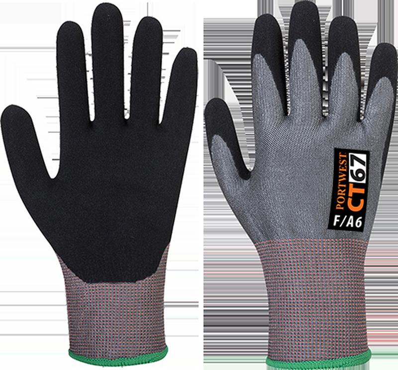 Разработанная для достижения максимальной защиты от порезов уровня F модель CT67 сконструирована с использованием самых современных технологий гарантирующих отсутствие в составе стеклянных и стальных волокон без снижения при этом устойчивости к порезам. Воздухопроницаемая подкладка с плотностью 13 обеспечивает отличную посадку а покрытие нитриловой пеной обеспечивает отличный захват во влажных и масляных условиях.