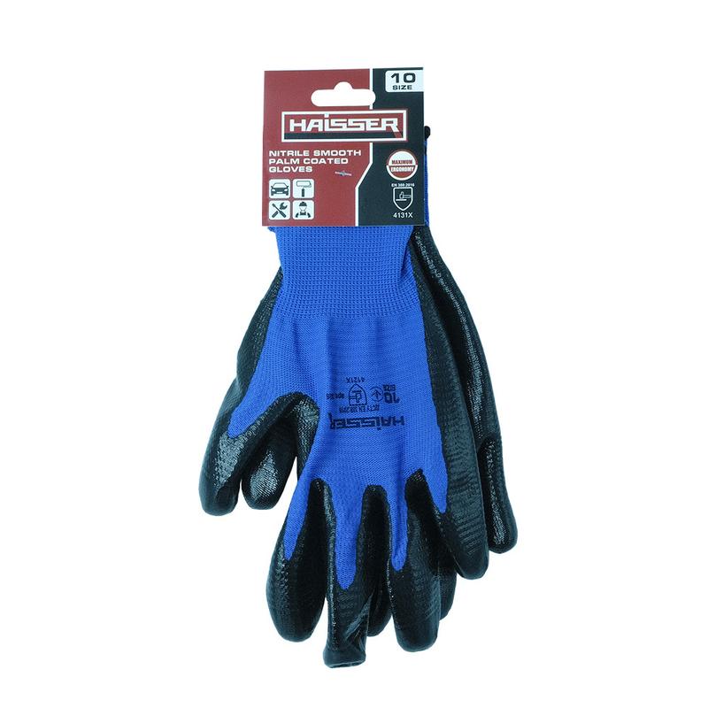 (211426) перчатки полиэстер синие с черным нитриловым покрытием, гладкая с подв. haisser