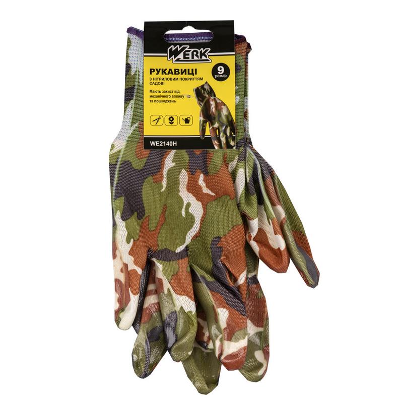 (we2140h) перчатки рабочие (сад-огород) с нитриловым покрытием хаки werk с подв.