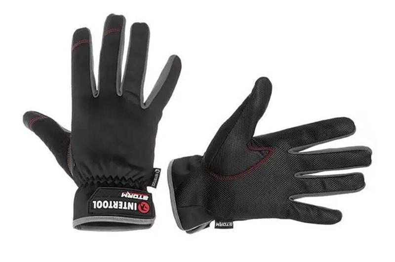 Перчатка Intertool-Storm позволяют работать с сенсорными экранами телефонов, планшетов, не снимая перчаток. Ладони с противоскользящим покрытием "Gripteq 3S" улучшают сцепление рук с поверхностью инструмента или других предметов. Изготовлены перчатки из спандекса – высокотехнологичного материала, который позволил сделать одновременно прочные и комфортные перчатки, не сковывающие движений. Вставка из специальной поглощающей влагу ткани на большом пальце обеспечивает комфорт даже в жару или во время интенсивных работ, позволяя рукам оставаться сухими. Манжеты с резинкой фиксируют перчатки, не позволяя им соскальзывать с ладоней.