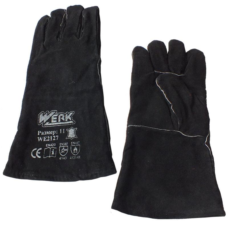 Штрих код: 6914466021278. Матеріал виготовлення: замшевая кожа. Призначення: перчатки (краги) для сварочных работ. Колір рукавичок: Чорний. Кількість пар в упаковці: 1. Додатково: Робочі рукавички (краги) для зварювальних робіт. Виробник: Werk. Країна походження: Китай. Гарантія: Повернення/обмін 14 днів. Розмір: 11.