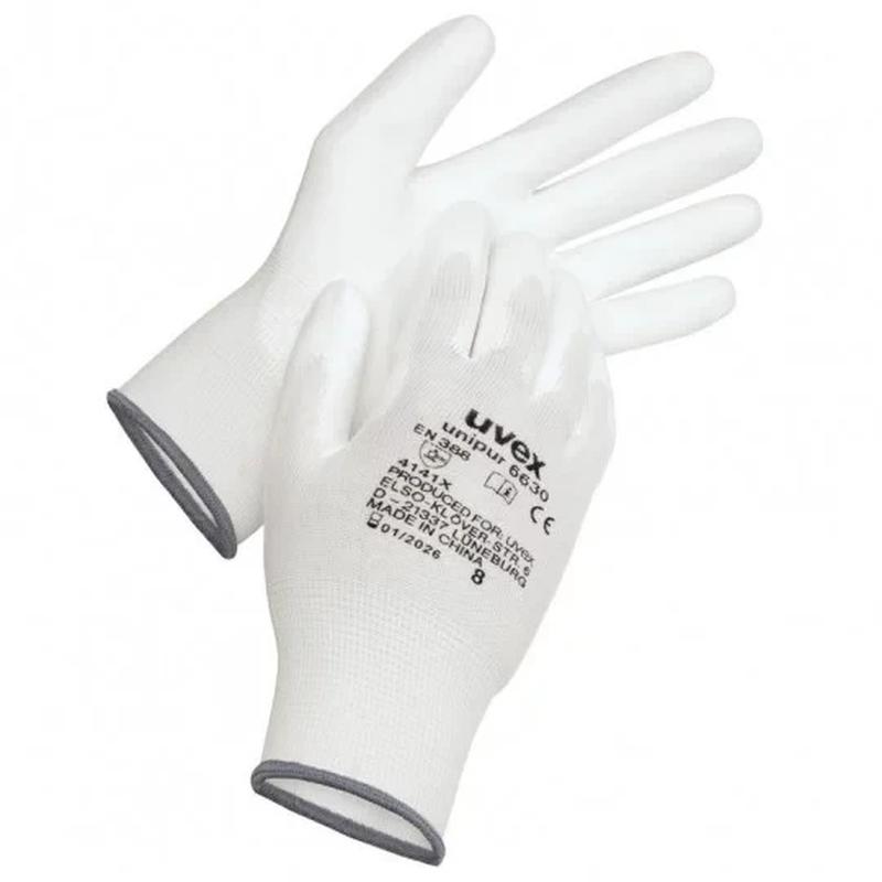 uvex unipur 6631/6630 - проверенная, легкая и гибкая перчатка uvex unipur подходит для точных механических работ в сухой или слегка влажной рабочей среде. Прочное полиуретановое покрытие очень устойчиво к истиранию, но при этом обеспечивает выдающиеся тактильные ощущения. Общие характеристики - Полиуретановое покрытие на ладони и кончиках пальцев - Цвет: белый Особенности комфорта - Выдающиеся тактильные ощущения - Очень хорошо подходит - Высокая гибкость Функции защиты - Сертифицирован по EN 388:2016 (4 1 4 1 X) - Хорошая механическая прочность и стойкость к истиранию благодаря футеровке из полиамида и полиуретановому покрытию.