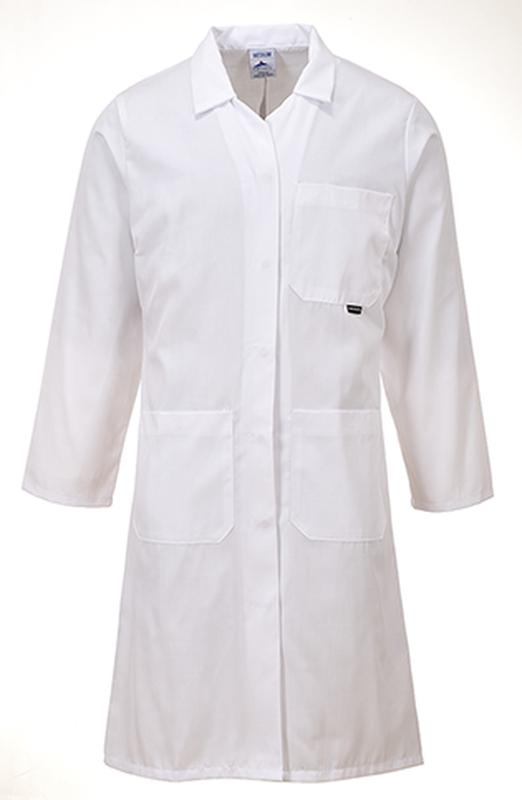Стильный и практичный этот халат со скрытыми передними кнопками предлагает максимальный комфорт в течение всего дня. Нагрудный карман два боковых кармана.