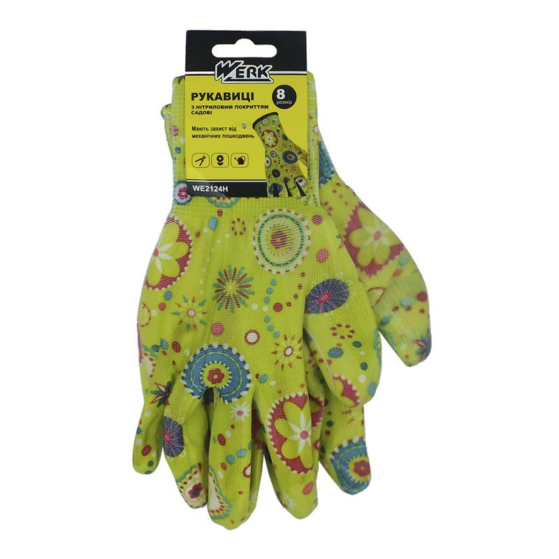 (we2124h) перчатки рабочие (сад-огород) с нитриловым покрытием зеленые werk с подв.