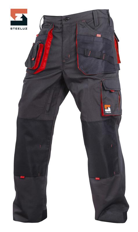 Брюки защитные рабочие SteelUZ Брюки STEELUZ производятся из износостойкой сверхпрочной ткани CANVAS (плотность 273 г/м², состав: 65% - полиэстер, 35% - хлопок). Защитные усиливающие накладки из ткани OXFORD, плотностью 200 г/м², прочные накладки на коленях и по низу штанин - из ткани CORDURA, плотностью 223 г/м². Ткань имеет полотняное переплетение, что обеспечивает необходимую воздухопроницаемость и комфорт. Брюки выполнены в едином цвете "dark-grey", но с четырьмя цветовыми вариантами отделки контрастных элементов (красный, светло-серый, синий и салатовый). БРЮКИ STEELUZ: - эргономичный многофункциональный дизайн - 9 объемных карманов: из них 6 на липучке - для надежного хранения и быстрого доступа к смартфону, крепежу, инструменту - светоотражающие элементы - усиленные швы - пошаговый шов и шов сидения - высокопрочный тройной шов - 54 строчки-зигзаг (закрепки) повышают прочность нагруженных соединительных узлов - высокопрочные накладки из ткани OXFORD на карманах - суперпрочные, устойчивые к искрам, порезам и проколам накладки из ткани CORDURA на коленях и по низу штанин - разгрузка для инструмента - крепление для молотка - удобное кольцо для ключей - быстросъемное крепление для ременно-поясной системы - карманы для установки амортизирующих наколенников - вентиляция паховой зоны - ширина талии регулируется липучками ###