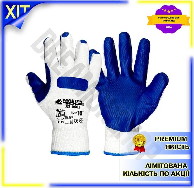 Dm перчатки стекольщика mastertool спецификация 2.2 латексные с усиленной ладонью 10 дюймо...
