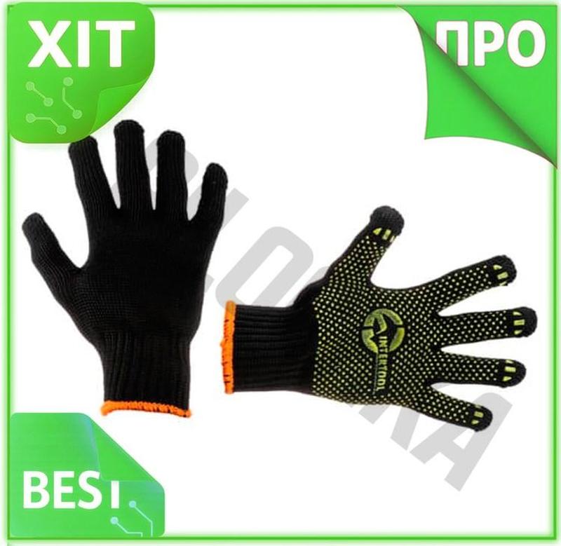 Ve перчатки хлопчатобумажные intertool черные new version с пвх покрытием для строительств...