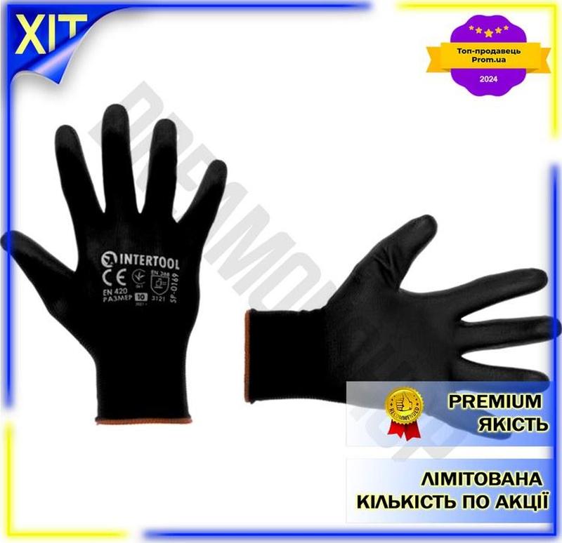 Dm рукавички intertool поліуретанові специфікація 2.2 чорні 7 дюймів для роботи та захисту...