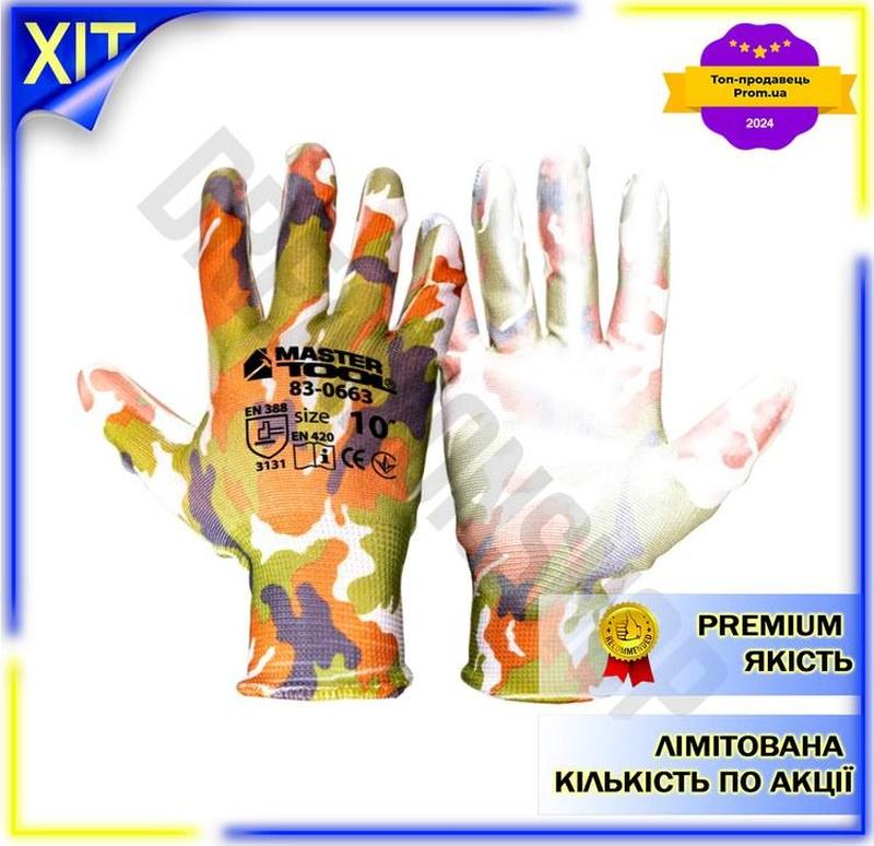 Dm перчатка mastertool полиуретановая спецификация 2.2 хаки 10" для хозяйственных и садовы...