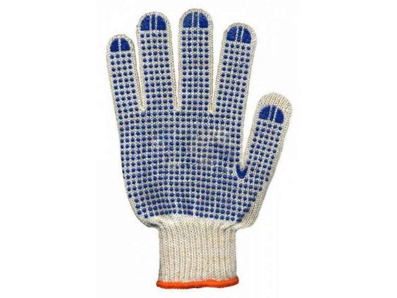 Перчатки рабочие 8310 белые с синей ПВХ точкой Standart в 3 нити 10р. ТМ VIVA TRADE Основное назначение: погрузочно-разгрузочные работы; работа на конвейере; строительство; хозяйственные и механические работы; сбор мебели и деталей; техобслуживание. 70% хлопок, 30% полиэстер 10й клас вязки Плотность 160 ТИХ г / км Вага пари 45 грам. Размер 10й