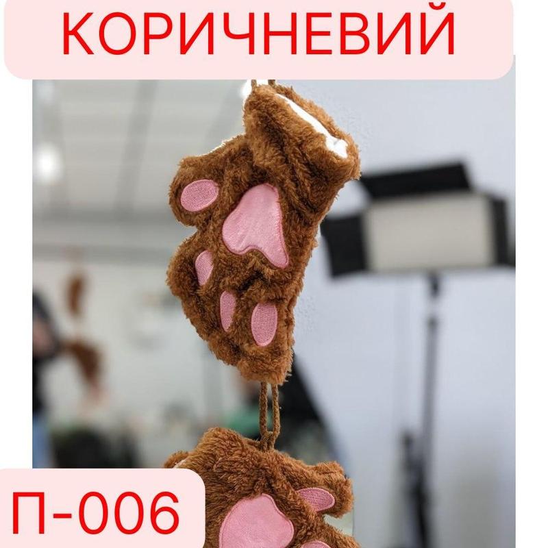 Перчатки лапки темнокоричневі-рожеві п-006