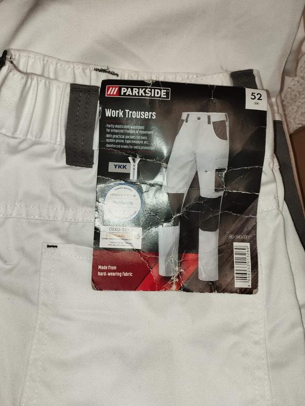 Новые рабочие штаны Parkside (Lidl), размер L/ 52. 📏Замеры:📝 - Длина 110 см - Пояс 44 см, от боков, по спине вшита резинка, тянутся до 49 см; - По стегнам 58 см. Тканина не тягнеться. 📌Изготовлены из прочной, износостойкой ткани - идеально подходят для строительных, ремонтных и хозяйственных работ. 📌Эластичная вставка в поясе для комфортной посадки 📌Много функциональных карманов (для инструментов, телефона, рулетки и т.д.) 📌Качественная молния YKK Цвет: светлый (белый / светло-серый) Отличный вариант для работы, ремонта или строительства.