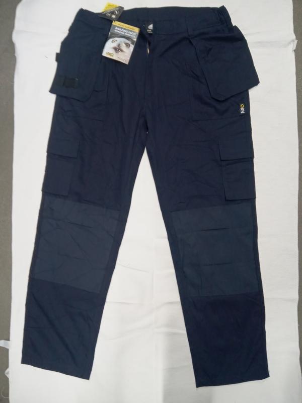 Брюки рабочие QRN,размер. M/L Новые,цвет темно-синий,65% полиэстер,35% хлопок Полуобхват талии 43см Полуобхват бедер 64см Высота. 112 см Шаговый шов 81 см Карманы установки наколенников с тройным усиленным швом