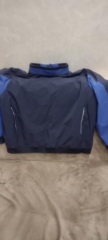 Синяя рабочая куртка кофта от engelbert strauss с водоотталкивающей тканью, которая защитит от ветра и дождя. Она хорошо подходит для любых наружных работ или активного отдыха.Размер 2xl на большого мужчины кг110-115. Брал себе на 100кг немножко широкая в животе