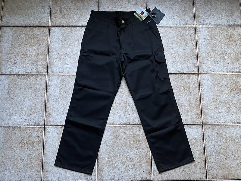 фірмові робочі штани Mascot Grafton (Denmark)ергономічний крій, розмір M/L 50/52, ширина в поясі від 45 см і тягнеться до 46 см, довжина за зовнішнім швом 105 см, ширина штанини на виході 23 см, колір чорний, зносостійкий матеріал 65% поліестер 35% котон водовідштовхувальним ефектом, 2 бічні кишені 2 на стегнах 2 ззаду, надійна фірмова фурнітура, стан нові Характеристики: Міцні потрійні шви на нозі та в промежині продовжують термін експлуатації виробу. Кишеня на стегнах із застібкою на гачок і петлю та клапаном. Петлі для ременя Задні кишені з посиленням. Передні кишені. Ширінька на блискавці. Петля для молотка. Кишеня на стегнах з клапаном і застібкою на гачок і петлю. Посилена кишеня з лінійкою. Потрійні шви на нозі та в промежині.