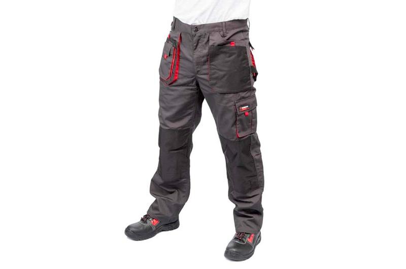 Робочі штани темно-сірого кольору виготовлені з міцної тканини: 80% поліестер та 20% бавовна з щільністю 260 г / м². Наявність безлічі кишень дозволяє розвантажити руки і забезпечує швидкий доступ для підручного інструменту. Продуманий крій для комфортної роботи Блискавка з вітрозахисним клапаном Накладки з чорної тканини для вставки наколінників забезпечують зручність в роботі на твердих поверхнях Широкі петлі для ременя