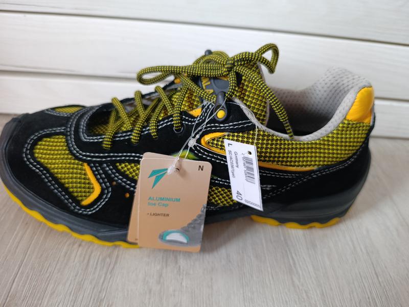 Нові робочі кросівки з посиленим захистом. Основні характеристики: • Розмір: 40 • Захисна вставка на носку для безпеки • Чорно-жовте кольорове поєднання • Міцна підошва з протиковзними властивостями • Дихаючі текстильні вставки • Надійна шнурівка для фіксації стопи Підходять для роботи на будівництві, складах, виробництві. Забезпечують комфорт і захист протягом робочого дня.