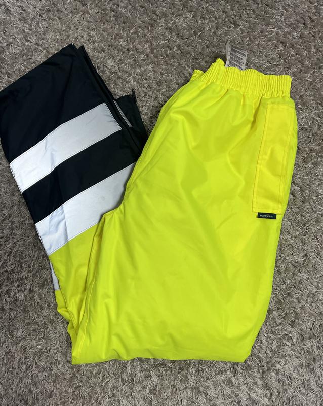 Дуже теплі зимові робочі штани Portwest високої видимості, світловідбиваючі, водонепроникні, вітрозахисні, з середини дуже тепла підкладка. По боках є кишені. Штани в ідеальному стані, стан нових не ношені. Довжина штанів 110 см. Ширина пояса 40 см.( Пояс на резинці, ще добре тягнеться ) Внутрішній шов 77 см. Півобхват бедер 67 см.