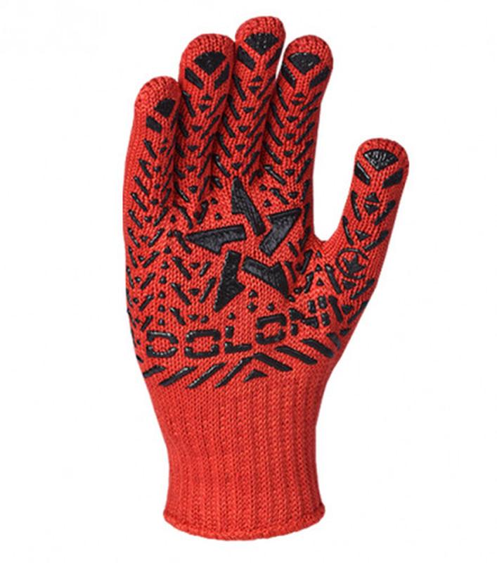 Doloni 4040 серії Зірка. Це безшовні рукавички з покриттям ПВХ у вигляді малюнка. Армуюче полівінілхлоридне покриття забезпечує гарне зчеплення з поверхнею, що допомагає міцніше утримувати слизькі предмети і зменшує навантаження на руки. Такі рукавички для монтажних робіт забезпечують захист кистей рук та області зап'ясть від механічних пошкоджень та забруднень. Чим більша сумарна площа ПВХ напилення, тим виріб міцніший. Таке спеціальне покриття продовжує термін служби рукавичок, вони менше протираються та оберігають руки від пошкоджень. Манжети обробляються спеціальною міцною ниткою. Такі рукавички добре вбирають вологу та пропускають повітря. Тому за тривалої роботи це допоможе шкірі дихати. Вироби мають м'яку структуру, яка не перешкоджає руху, що особливо важливо при роботі з дрібними предметами. Сьомий клас в'язання означає, що при в'язанні виробу петлі розташовуються із щільністю 7 штук на дюйм. Сфери застосування: - сад, сільське господарство; - будівельні майданчики; - ремонтні та монтажні роботи; - автомайстерні; - навантаження - розвантаження, в т.ч. навантаження важких предметів; - овочесховища; - фасування - упаковка; - склад; - механічні роботи; - обробка каменю; - меблеве, деревообробне виробництво. Особливості моделі: - Рукавички з полімерним покриттям: ПВХ малюнок на долоні. - Еластична манжета. - Площа облива: без облива. - Матеріал рукавичок: 40 ХБ / 60 ПЕ. - Клас в'язання: 7. - Розмір: 11 (2XL). - Колір: червоний. - Характеристики відповідно до стандарту EN 388: 1. Стійкість до стирання (від 0 до 4): 2. 2. Стійкість до порізів (від 0 до 5): 1. 3. Опір розривам (від 0 до 4): 4. 4. Опір проколам (від 0 до 4): 1.