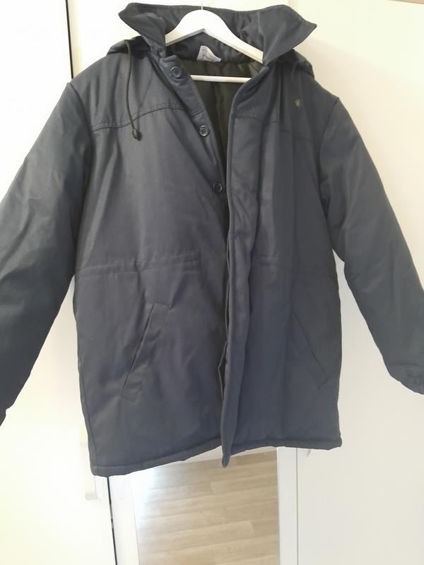 Куртка зимняя удлиненная, производитель TOG TRADE, очень теплая, с ветрозащитной планкой, застегивается на пуговицы, карманы-2 нижних прорезных, один внутренний, рукава на резинке, капюшон отстегивается. Особенности-выдерживает температуру до -20 градусов. Состав ткани:50% хлопка, 50% полиэстр, утеплитель-полиэстр. Цвет-темно-синий, размер 48-50, рост 170-176. Размеры:ПОГ-63 см., ПОБ-62 см., плечи-54 см., длина рукава-63 см., длина изделия -80 см.