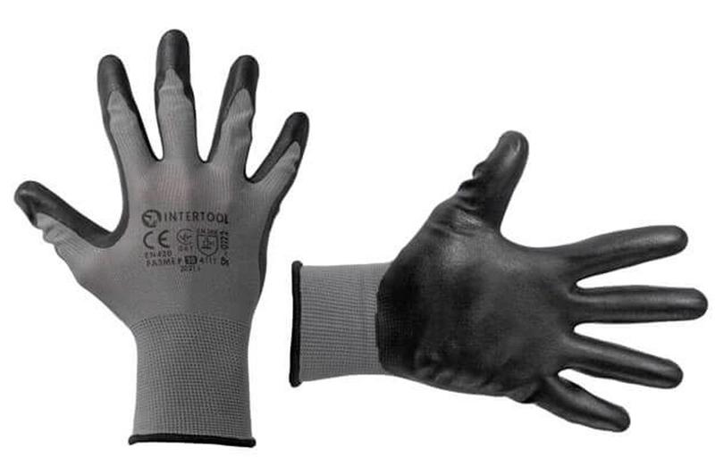 Перчатки SP-0122 изготовлены из синтетического волокна и связаны бесшовным методом. Покрыты серым рифленным латексом на ладони, обеспечивающим максимально надежное сцепление с предметами при проведении бытовых, строительных и садовых работ. Устойчивы к истиранию и имеют долгий срок эксплуатации. Воздухопроницаемая тканевая основа создает дополнительный комфорт. Размер: 10"; Вязка: 13 петель на 1", бесшовная; Покрытие: нитрил на ладони