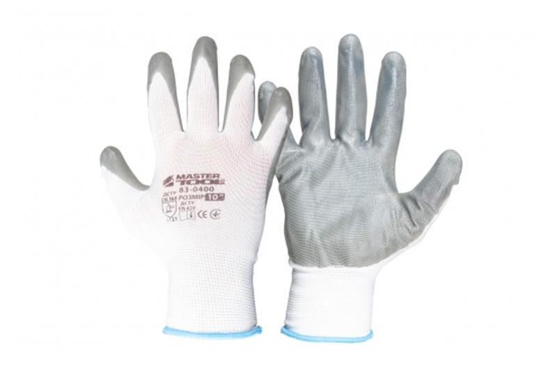 Перчатки mastertool с нитриловым покрытием 10" (бело-серые) (83-0400) (12 шт.)