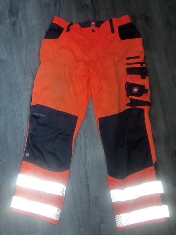 Предлагаю профессиональные рабочие брюки от топового немецкого бренда Engelbert Strauss. Модель линейки Motion 2020 в ярком сигнальном цвете с высоким уровнем видимости. Идеальный выбор для дорожных работ, строительства или логистики, где безопасность и комфорт на первом месте. 🛠️ Основные характеристики: Бренд: Engelbert Strauss (Оriгинал). Размер: 54 (L/XL). Цвет: Ярко-оранжевый (Hi-Vis) с темно-серыми вставками. Материал: Прочная, износостойкая ткань, выдерживающая большие нагрузки. Особенности: Светоотражающие полосы, усиленные зоны колен, большое количество функциональных карманов для инструментов и телефона. Брюки в хорошем рабочем состоянии. Все замки, кнопки и липучки работают исправно. Обратите внимание: есть незначительные следы использования (мелкие точки, характерные для рабочей одежды), отображаемые на последних фото. На функциональность не влияет.