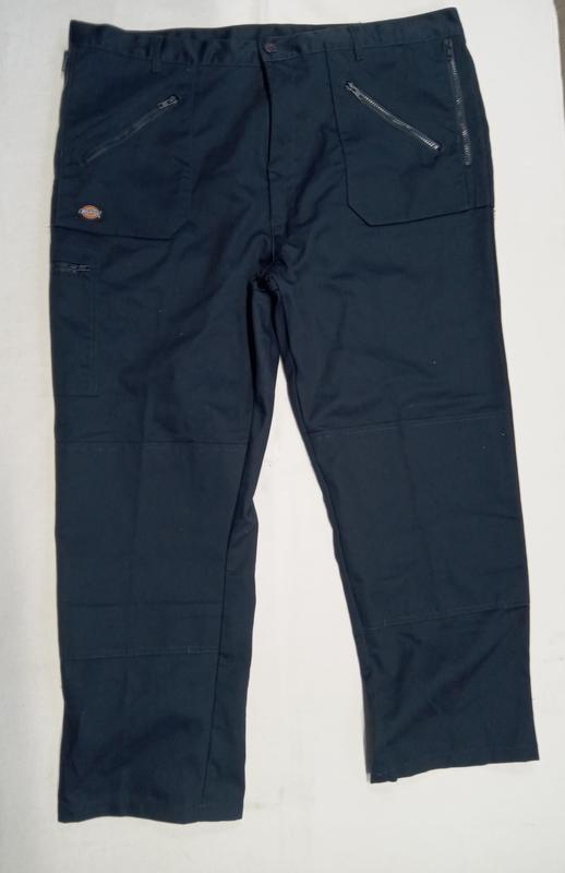 Брюки рабочие Dickies,размер 3XL/4XL Цвет темно-синий,65%полиэстер,65%хлопок Полуобхват талии 58 см Полуобхват бедер 66см Длина 107,5см Шаговый шов 74 см есть карманы для наколенников