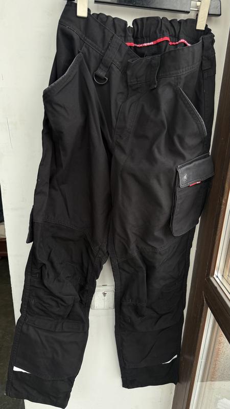 Колір: чорний Розмір: 42 (чоловічі) Стан: ідеальний, як нові. 🔹 Оригінальна модель 🔹 Міцна щільна тканина (зносостійкий текстиль, стандарт Oeko-Tex Standard 100) 🔹 Пояс ззаду на резинці — регулюється, зручно сідають 🔹 Накладна карго-кишеня на лівій штанині 🔹 Дві задні кишені на липучках Якісні, міцні, практично в стані нових.
