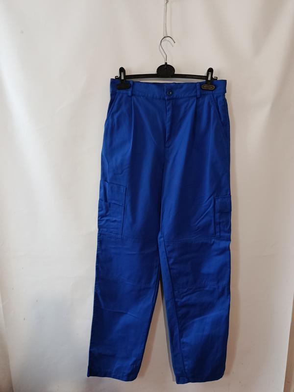 Качественные мужские рабочие брюки карго. Состояние новой вещи 100% хлопок 6 карманов По талии регулируются Цвет синий Длина 120 см шаговый шов 89 см талия ширина 40 см высота талии спереди 32 см сзади 39 см бедра ширина 52 см ширина штанины вверху 32 см внизу 22 см