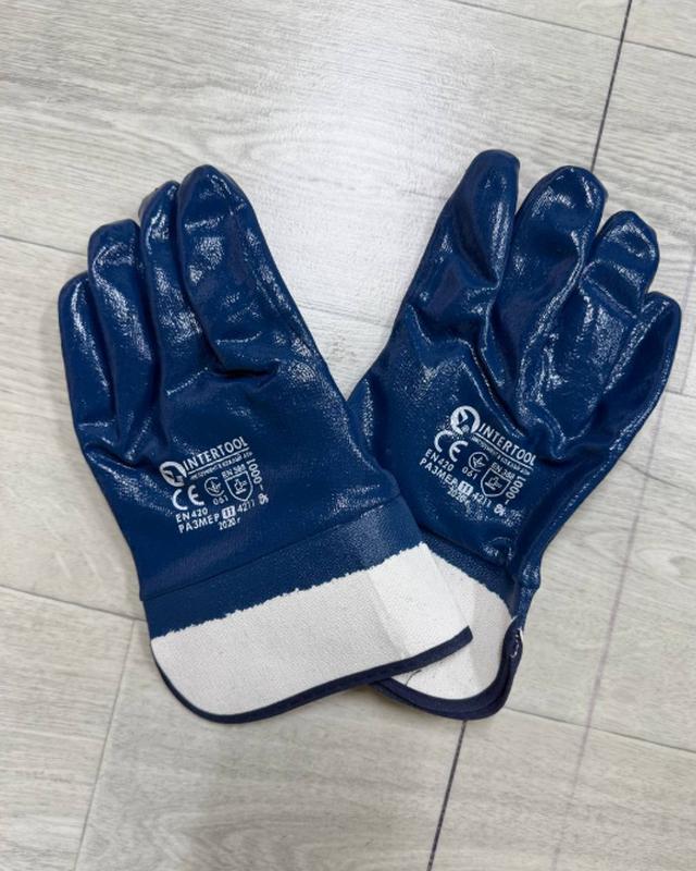 Рукавички маслобензостійкі,міцні для грубої і важкої роботи. Повністю покриті нітрилом,притачна манжета крага.Чудовий сухий і вологий (промаслений) захоплення. Рукавички призначені для захисту рук від механічних впливів (порізів, проколів, стирання), а також нафти і нафтопродуктів, бензину, мінеральних масел, кислот і лугів середньої концентрації. Використовуються в різних галузях промисловості. Матеріал: бавовна, повне покриття нітрилом Підкладка: бавовняна тканина Манжет: жорсткий, захисний, у вигляді краг Довжина рукавички: 260 мм Колір: синій Захист від хімічних впливів Відповідає стандарту: ДСТУ EN 420-2001, EN 388-2005, EN 388, 4221