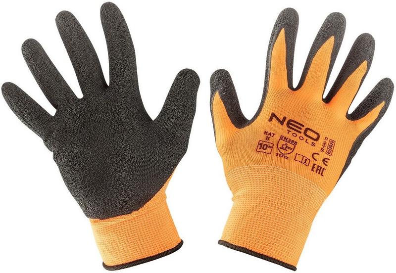 Перчатки рабочие neo tools, латексное покрытие, полиэстер, р.10, оранжевый