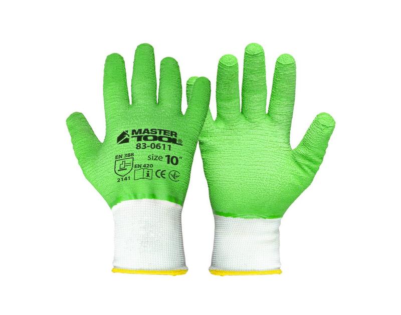 Перчатки трикотажные бесшовные mastertool полное ребристое латексное покрытие 10" подвес з...