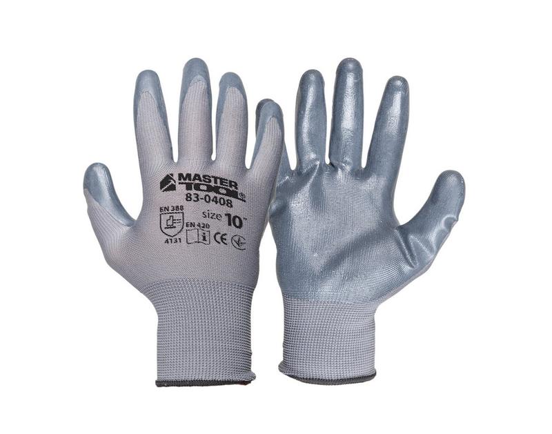 Перчатки трикотажные бесшовные mastertool нитриловое покрытие ладони 10" подвес серые 83-0408
