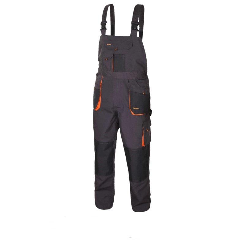 ПОЛУКОМБИНЕЗОН (СПЕЦОДЕЖДА) Классический комбинезон - привлекательный дизайн и безупречная функциональность. Изготовлен из очень прочной специализированной ткани - холста (80% полиэстера и 20% хлопка) с очень высокой плотностью 270 +/- 10 грамм / м2. профессиональное шитье и эстетика исполнения тройные швы и многочисленные сплошные закрепки, дополнительно укрепляющие места, особенно подверженные разрыву 10 карманов, два сзади, в том числе 5 с клапанами на липучках, дополнительный усиленный карман для линейки. 2 пришитых кармана для наколенников, позволяющих использовать сменные наколенники дополнительные усиления на карманах для предотвращения их протыкания острыми предметами из полиэстера 600d. широкие подтяжки с тугой резиной и прочными пряжками очень низкая усадка даже после многократной стирки стабильность цвета Цвет: графит с оранжевым и черными РАЗМЕРЫ 44 - 64
