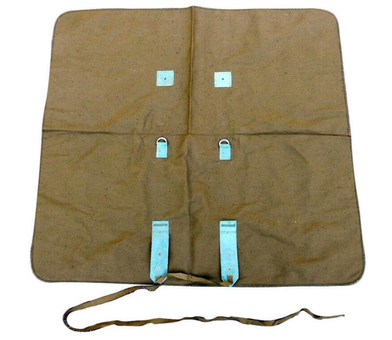 Косинка для переноски плаща ОП-1 матеріал бавовняна тканина щільність 265грм параметри: розмір 81*69см.детальний порядок укладки плаща ЗЗК ОП--1 - розстелити косинку на рівній поверхні наружною стороною у гору удержувачі плаща пропустити через прорізи в хлястиках косинки: - поли і спинку скласти продольними складками так, щоб габарити плаща по ширині не перевищували 30 см (мал.. а); - укласти плащ, починаючи знизу гармошкою (з шириною складок 15-20 см) на косинку і відвернути капюшон на плащ (мал. б);- завернути бічні сторони косинки, скатати плащ разом з косинкою і застібнути хлястики косинки (мал в) .