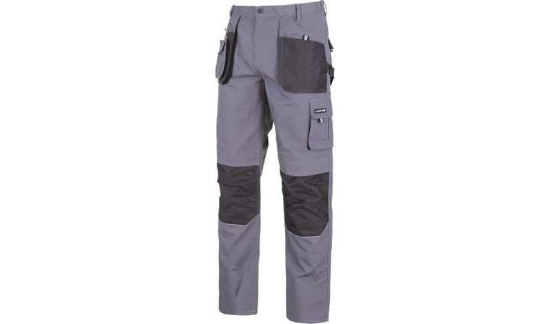 Щільність 265гр/м.кв МАТЕРІАЛ: 35% бавовна, 65% поліестер. Тканина типу CANVAS. 9 кишень, у т.ч. 6 застібаються на липучку. Кишеня для мобільного телефону. Потрійні шви. Регулювання ширини в поясі за допомогою гудзиків. Шльовка для молотка та ременя. Світловідбивні елементи. Звичайні кишені та кишені для вставки наколінників ущільнені матеріалом (600D поліефір), стійким до тертя
