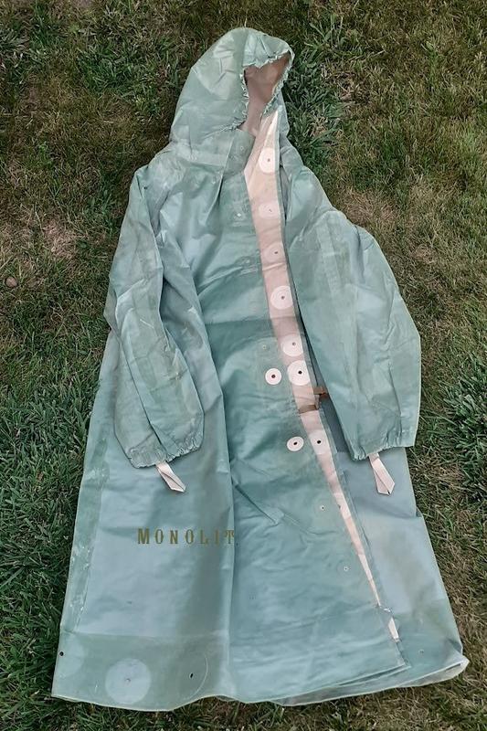 Характеристика Новые, производство СССР. Шпеньки (пуговицы) в комплекте. Применение Применяеться ка плащ рыбацкий для зимнего и летнего времени. Используеться сторожами, фермерами, и моряками для работы на палубе
