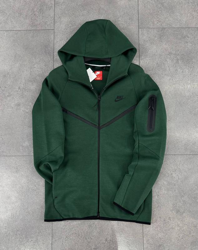 Мужская стильная кофта nike tech fleece на зиму-осень в зеленом цвете premium качества