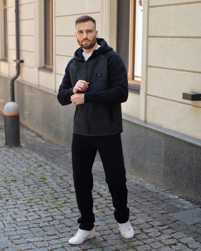 ⠀⠀Мужской теплый спортивный костюм на флисе. Размеры: 48, 50, 52, 54, 56, 58. Цена 1980. Ткань: стеганая плащевка/Турецкая 3х нить пенее на мягком флисе. Цвета: темно-синий, фуме (темно-серый), черный, хаки, морская волна, серый. Параметры модели: 182 см, 101/84/97. Размер одежды на фото: 50. Замеры изделия верх: ПОГ: 48р. - 56см, 50р. - 58см, 52р. - 60см, 54р. - 62см, 56р. - 65см, 58р. - 72см Длина рукава: 48р.82 см, 50р.-82 см., 52р. см, 54р.-84 см, 56р.-84 см, 58р. Длина изделия: 48р.- 67 см, 50р.- 68 см, 52р.- 69 см, 54р.- 70 см, 56р.-71 см, 58р.-72 см Измеры изделия низ: ПОТ: 48р. - 44см, 50рм., - 48см., 54см., 54см., - 56р., - 52мр., 58мр. 55см, 54р. - 56см, 56р. - 58см, 58р. - 60см Длина: 48р.- 107(81)см, 50р.- 108(82)см, 52р.- 109(83)см, 54р.- 111(84)см, 56р.- 113(85)см, 58р.- 11585(см)