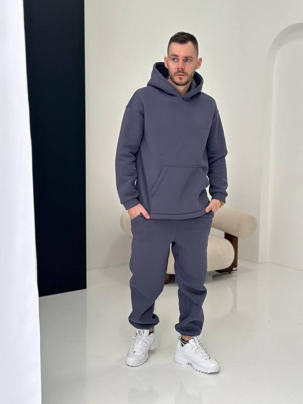 Трендовый мужской спортивный костюм на флисе 😎 Костюм пошит из качественной ткани трехнитка, которая красиво носится и не будет скатываться 👌 Изнутри костюм на теплом флисе, идеально для прохладной осени и зимы 🍂 Брюки костюма имеют карманы, широкую прошитую резинку на поясе. Кофта-кенгуру имеет свободный крой и широкий карман. Снизу кофта фиксируется затяжками. ✔️Цвет: графит ✔️Ткань: трехнить петля на флисе ✔️Код: 152/23 ✔️Размеры: S, M, L, XL, XXL 💵Цена : 2100 грн На модели размер М